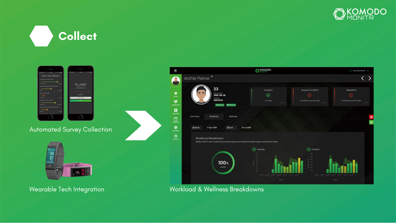 The interface provided by Komodo Monitr is like a resume, which monitors the physical status and training goals of young athletes and student athletes. The coach can easily grasp the physical condition of the athletes and the usual training from the resume. Different from other sports technology brands, Komodo Monitr allows users to use it intuitively through a simple and easy-to-understand UX/UI, helping coaches to avoid sports injuries while maximizing training results, strengthening the effectiveness of a single training, and improving players overall performance.