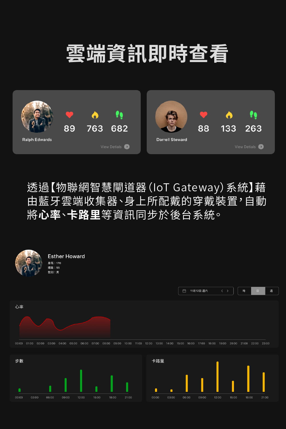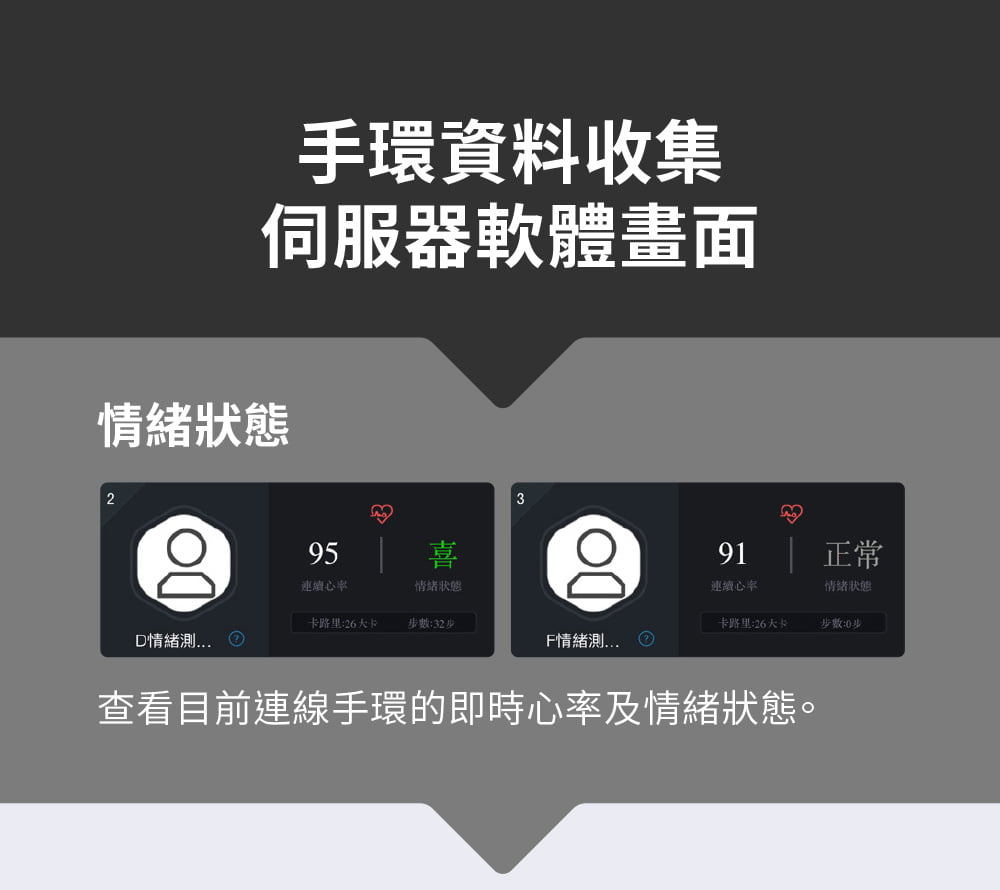 - 即時健康資訊查看,心率/卡路里/步數