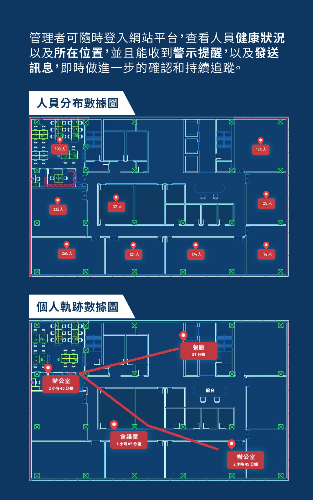 - 人員出入管控,定位資訊,軌跡數據圖