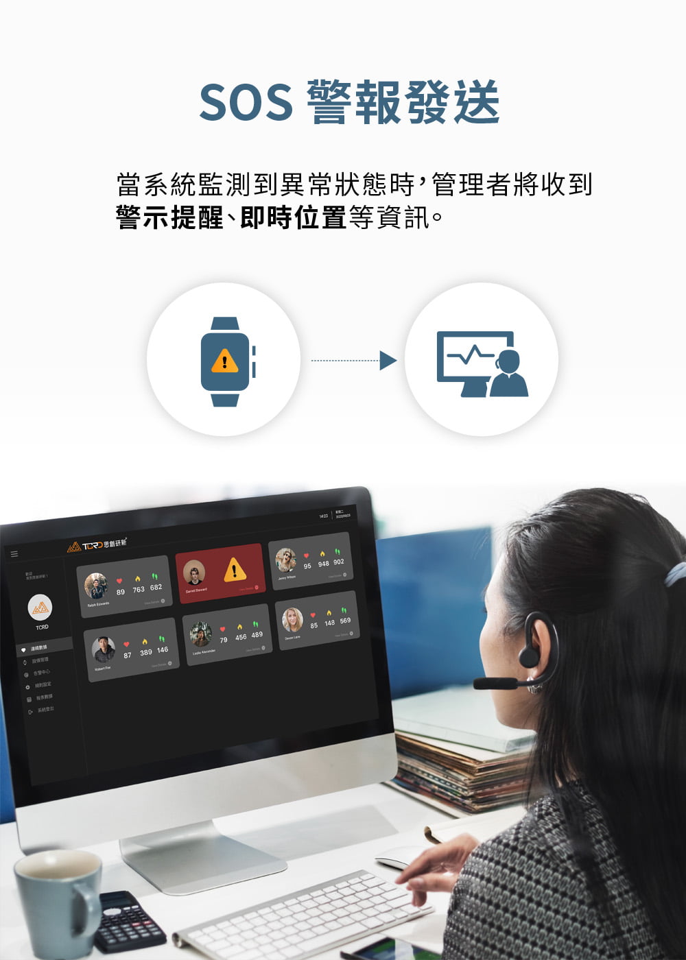 - 監測異常狀態,即發送SOS警報至後台